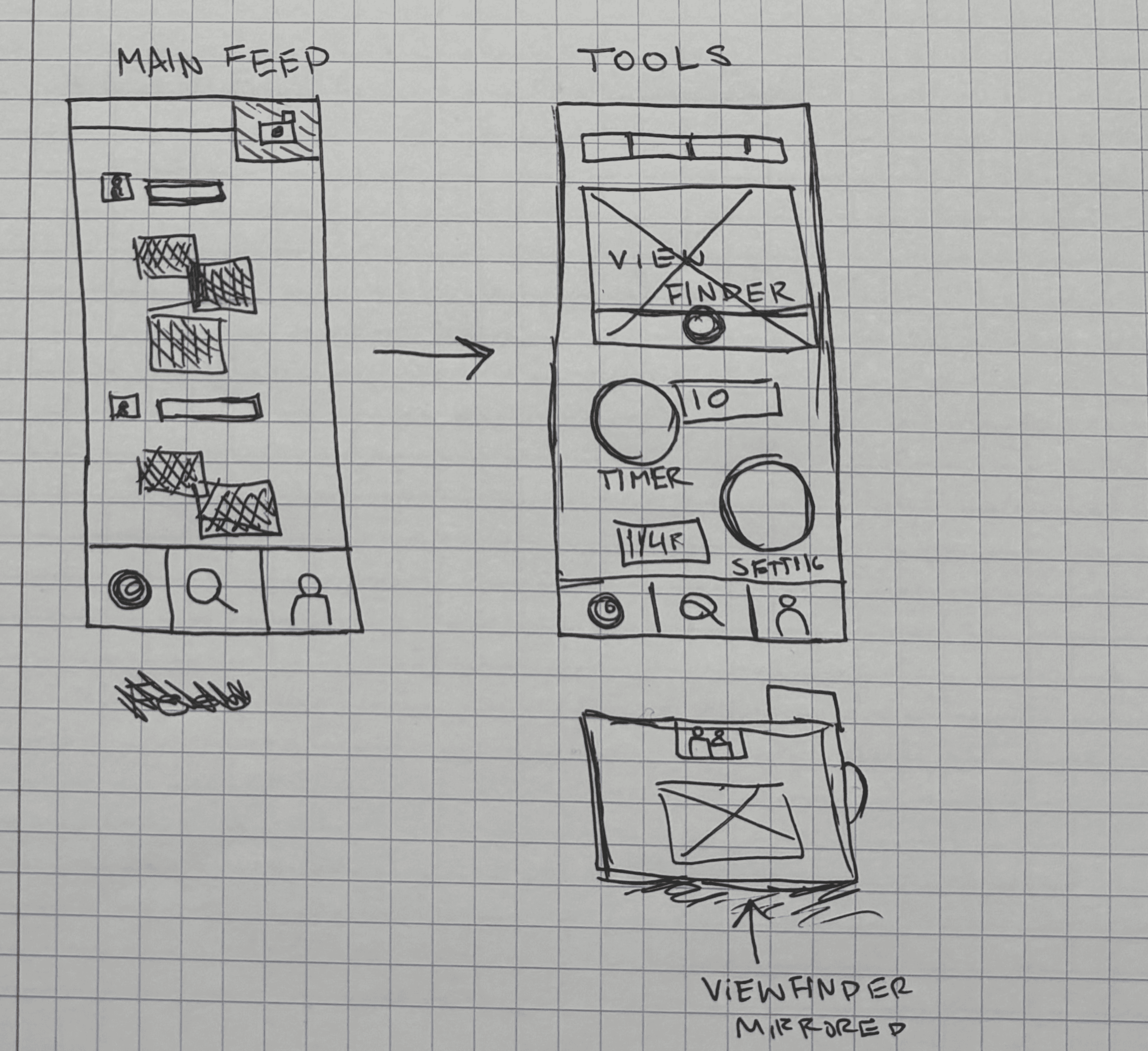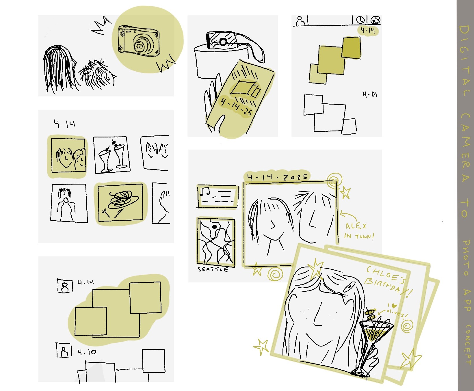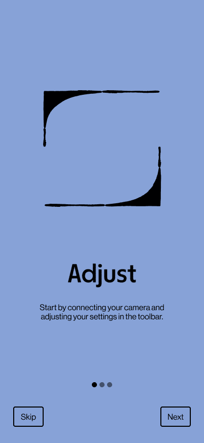 This mobile tool pairs with a physical camera. Collaborated with industrial designer, Lily Neville, who redesigned a digital camera to better fit the needs of modern day users.